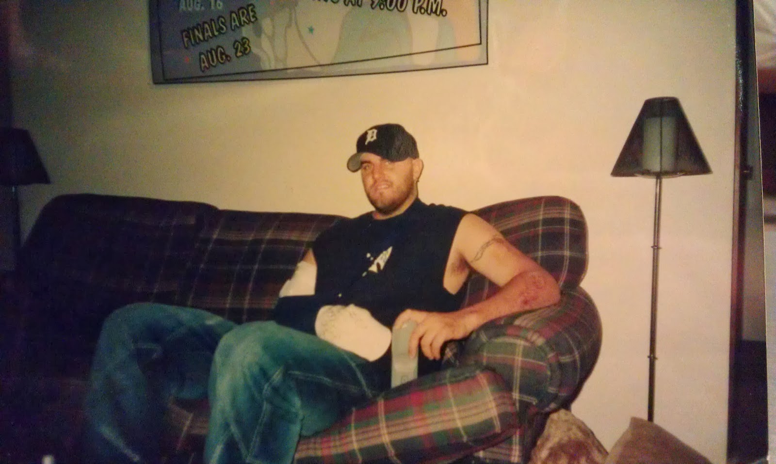 I thought I would start out by sharing a few pictures and facts about Shaun's accident. September 13, 2003: The day of Shaun's accident he had been at the Holiday Inn in Spring Lake, MI for a bike show. As he was heading home, he lost control of the bike just after the bridge in Grand Haven, MI. His choice was to either hit the guard rail on the bike and go over the guard rail down a hill or to jump off and hope for the best. So he pushed the bike away and bailed, hands over helmet, hoping all the cars behind would stop in time. When Shaun hit the pavement, he landed on his right shoulder. The force of the landing stretched all of his nerves like rubber bands, tearing all of them away from his spinal chord. He also suffered broken bones, road rash, and bruises.